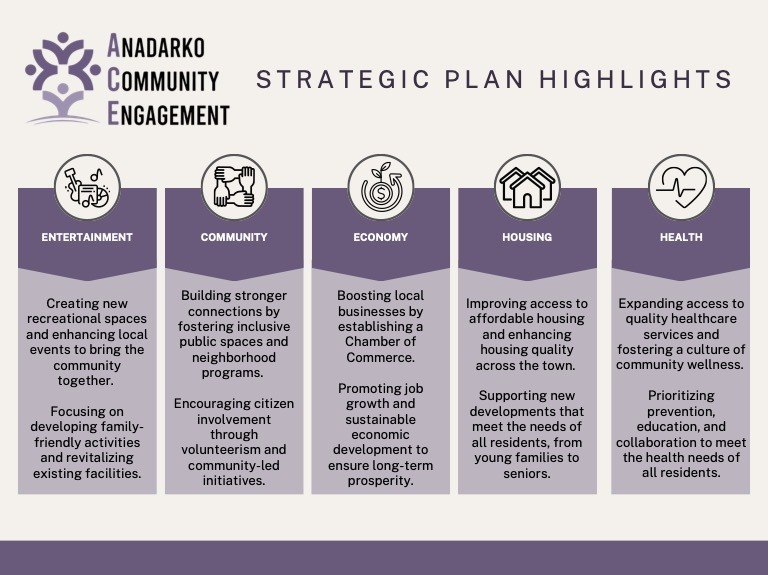By tackling important conversations around community needs such as housing, health, economic vitality, and quality of life, Anadarko Community Engagement seeks to turn ideas into action. One of the coalition’s goals is to connect people, resources, and funding to projects that make a meaningful difference in Anadarko. Through this collaborative effort, individuals, families, and organizations have a way to support initiatives that strengthen our community and create lasting, positive impact.